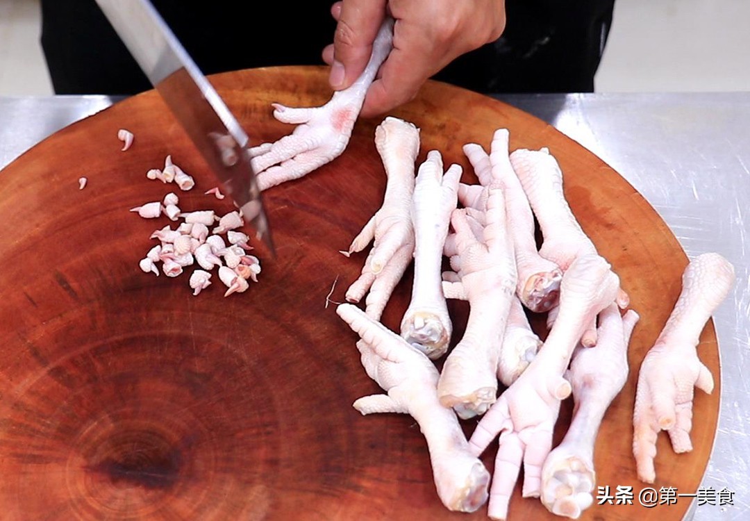 准备鸡爪500克,把鸡脚趾逐个去除。