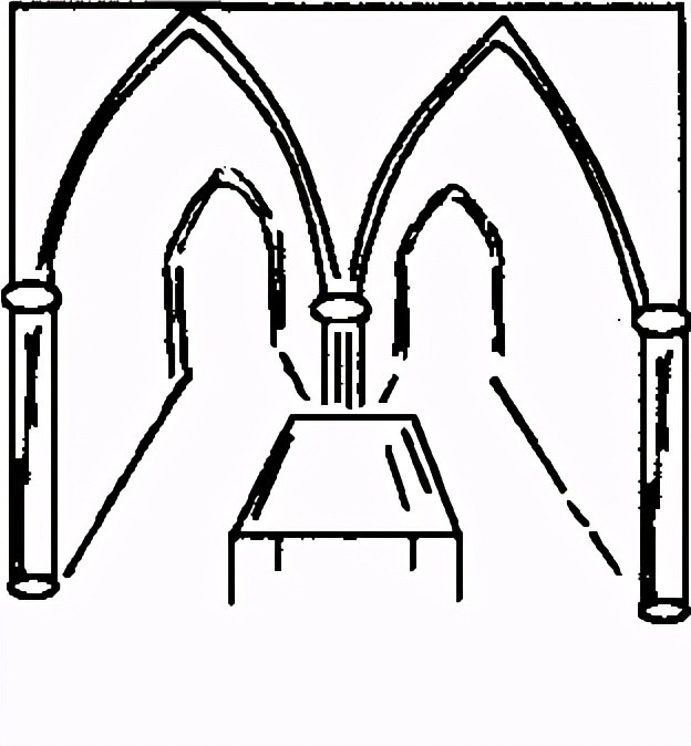 人们在修复15世纪荷兰布达拉的柯克的作品中发现了一幅三柱两拱结构的不可能的图形。图中的三柱是共面的,但前面的弯拱出现在它上面,而第三根柱基却出现在背景里,成了一个不可能的图形。
