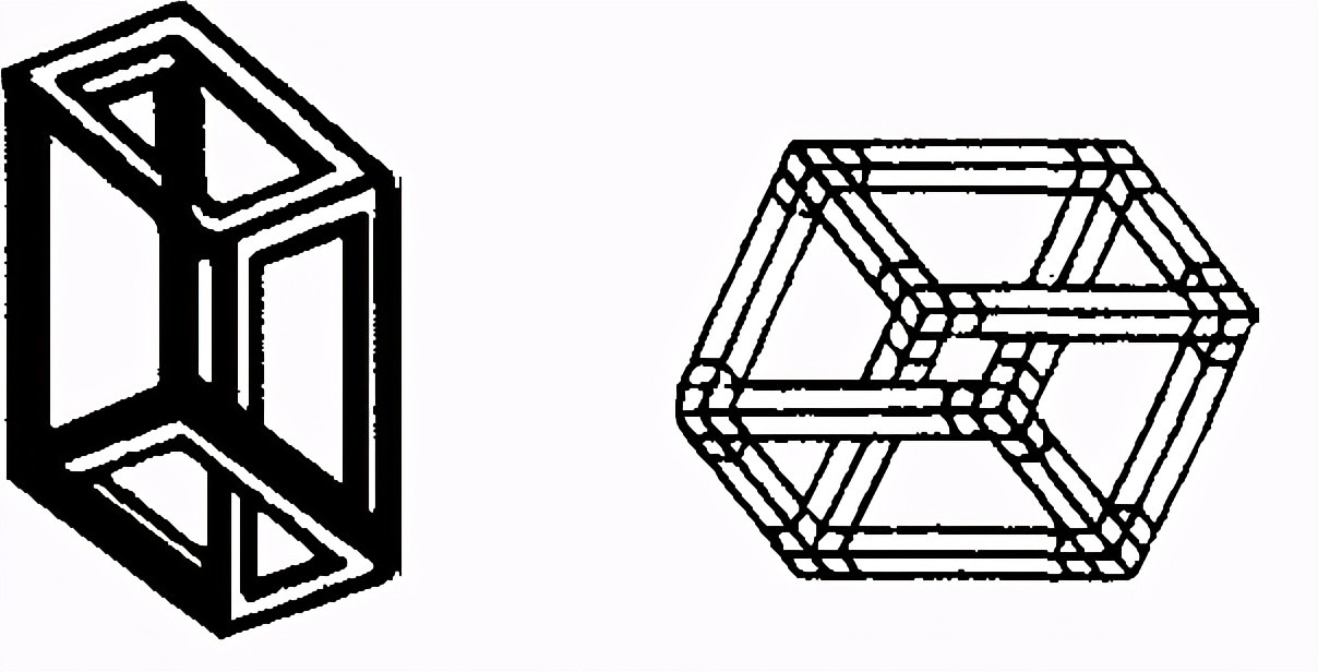 下图就是两个自相矛盾的三维空间不可能的图形。