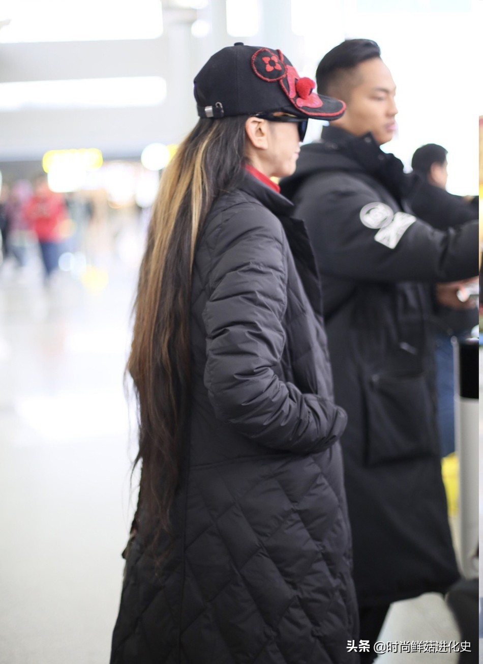 这次走机场,杨丽萍整体穿搭还是非常简单的,黑色羽绒长袍款式保暖,搭配红色连衣长裙设计感强,黑色背包款式更是独特。面戴墨镜虽然看不出杨丽萍脸部五官,但露出的白发还是比较显老,真能看出61岁了!
