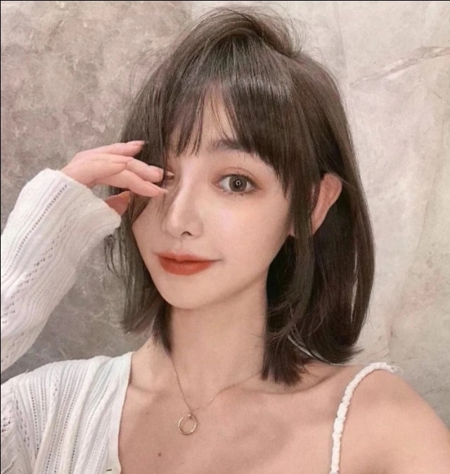 剪裁自然随性的刘海部分搭配初恋头,修饰脸型的同时显得非常甜美,脸颊两侧长一点的发丝将脸颊包裹,让脸型看起来更柔和,超级适合方脸的妹子,柔和刻板的形象,看起来更有女人味,有点蓬松感,早上起来打理的时候可以随意抓一下头发跟刘海,让头发显得不用那么贴头皮,更自然随意。