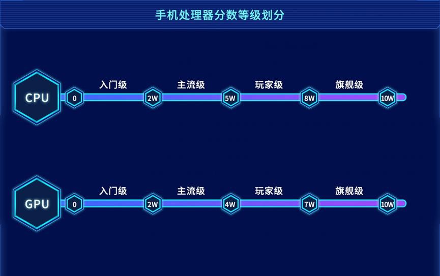在新版中,对手机处理器的要求变得更高,从官方公布的数据来看,一颗合格的旗舰处理器,CPU和GPU跑分都要超过8W—10W,总分将近20W。
