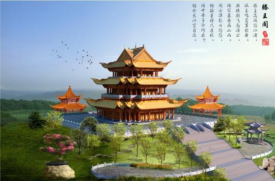 滕王阁,江南三大名楼之一。位于江西省南昌市西北部沿江路赣江东岸,始建于唐朝永徽四年,因唐太宗李世民之弟——李元婴始建而得名,因初唐诗人王勃诗句“落霞与孤鹜齐飞,秋水共长天一色”而流芳后世。