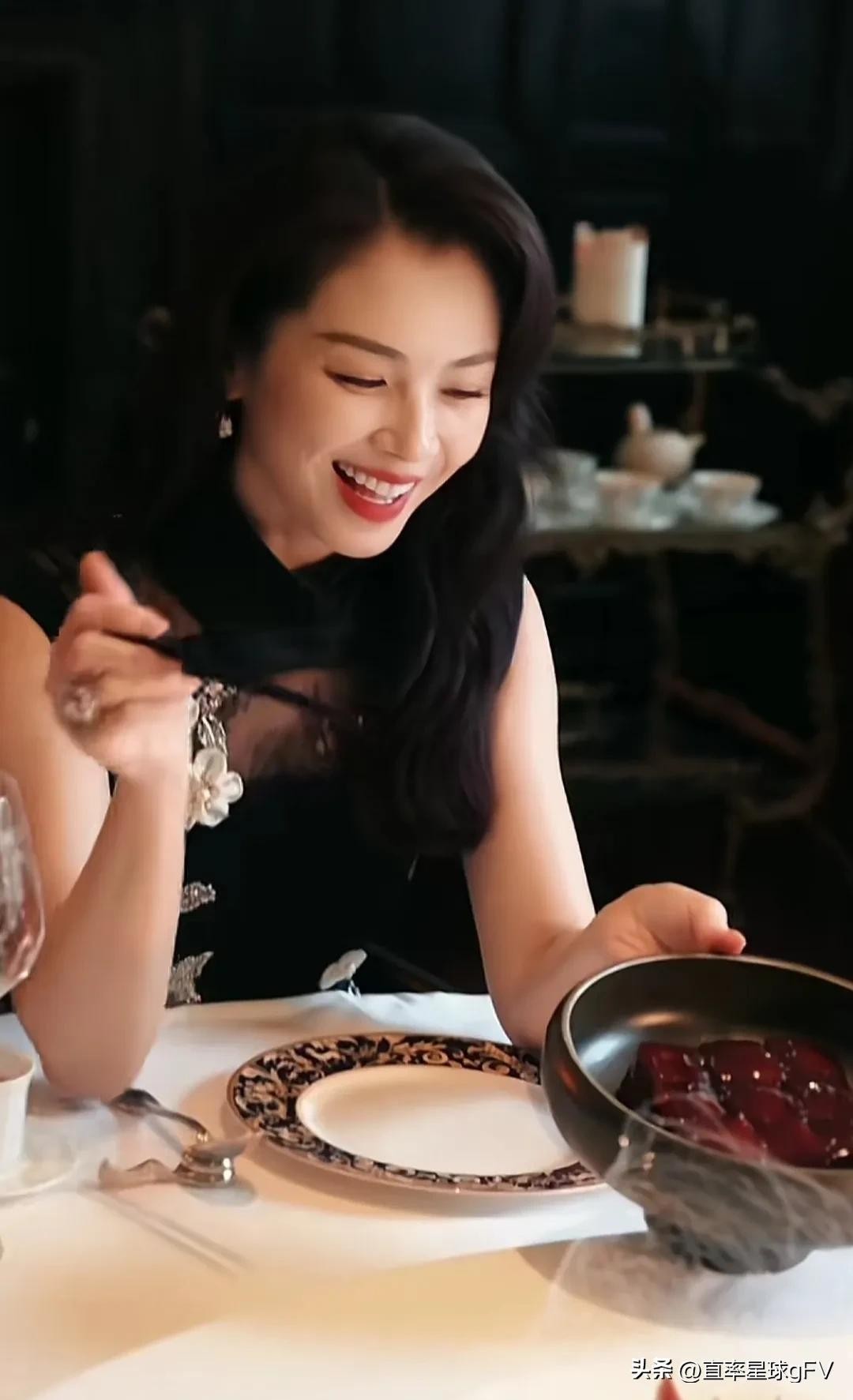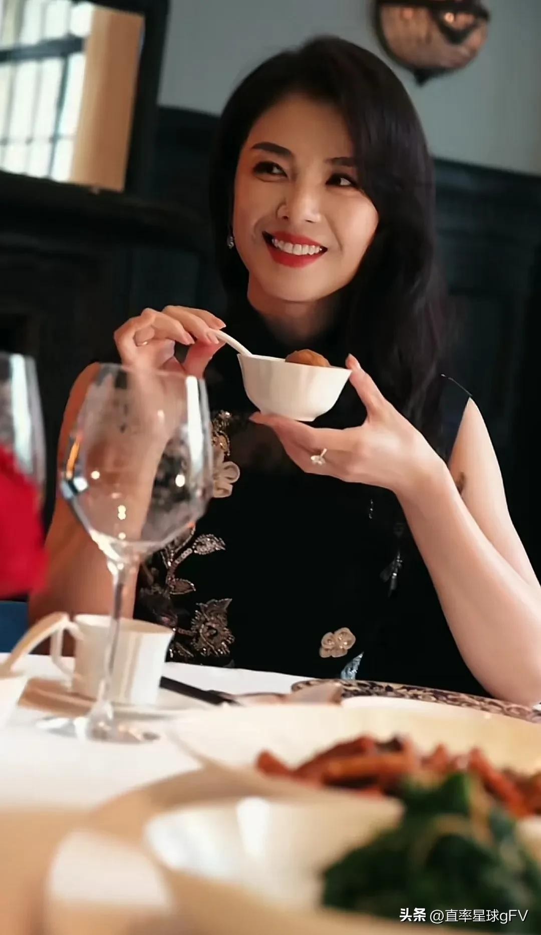 刘涛吃饭都这么美!穿黑丝旗袍连衣裙像贵妇,网友:真正的赢家!