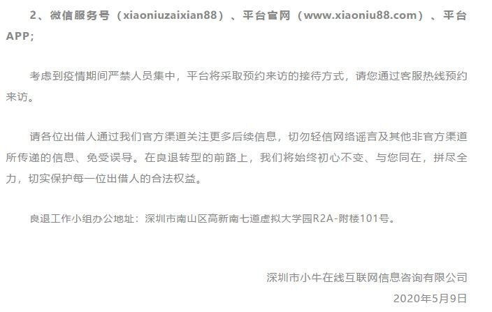 5月9日晚,深圳P2P平台小牛在线官方微信公众号发布公告正式宣布退出网贷行业。