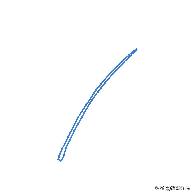 第一步:画两根接近于平行又稍微有点弧度的线条,让这两根线条的末端交接在一起,形成羽毛的柄。