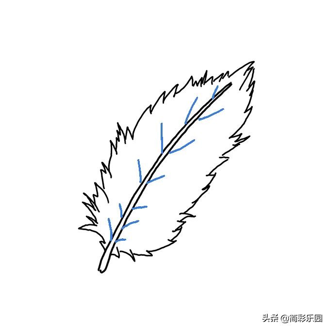 第二步:使用一系列锯齿形的线条画出羽毛左边的轮廓。