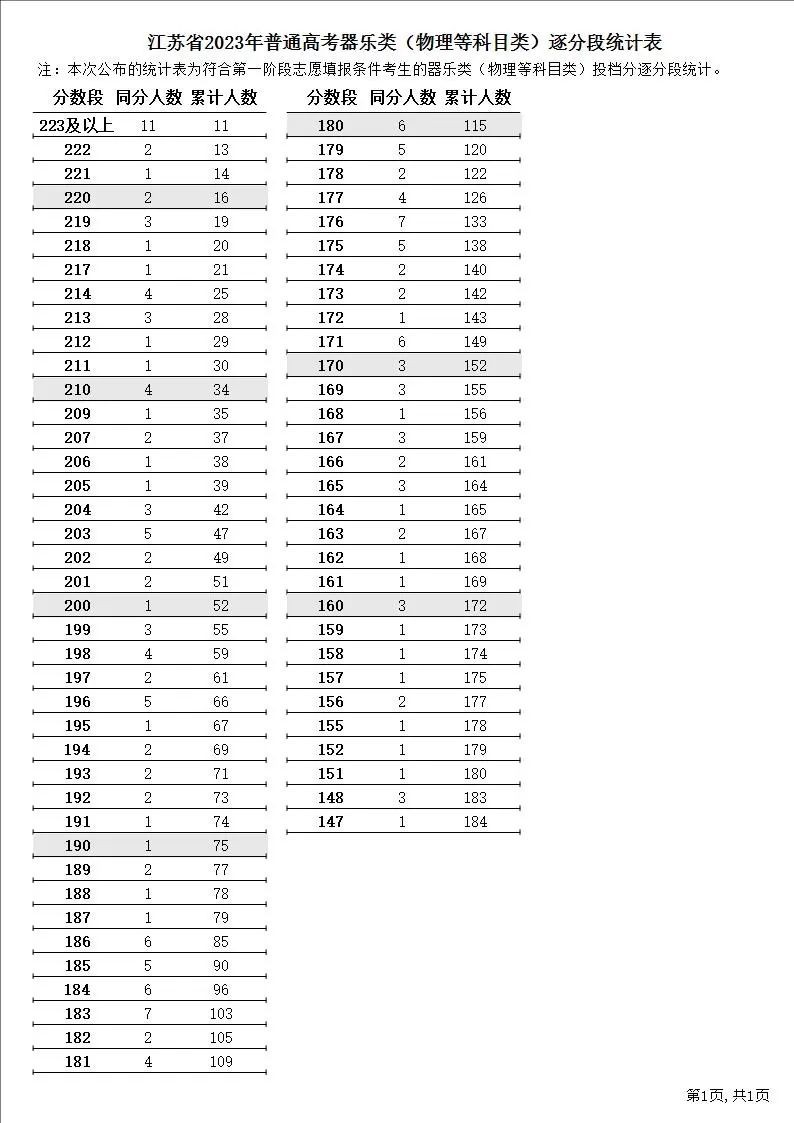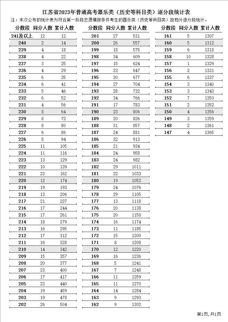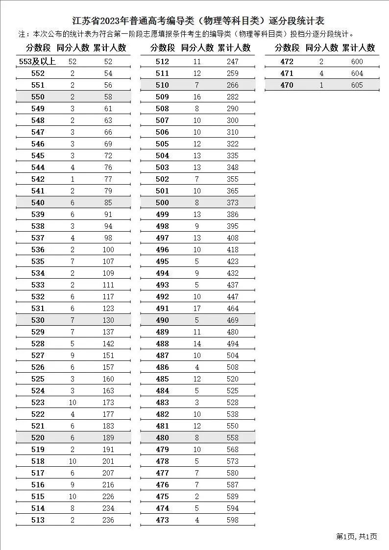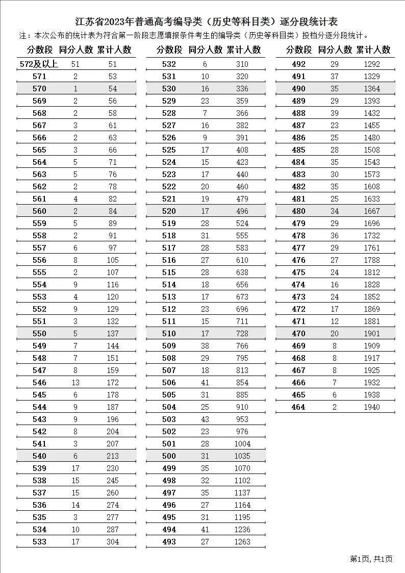 江苏高考逐分段统计表公布!