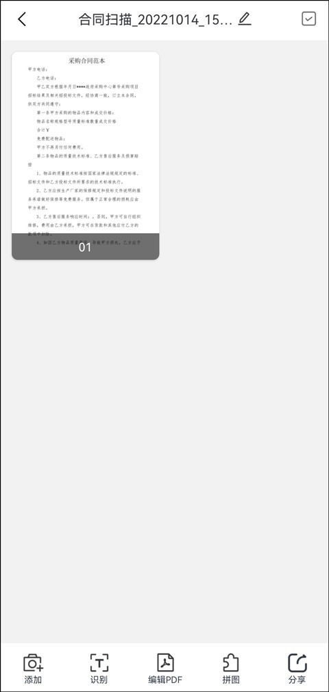 第四步:扫描件电子版将以pdf文档的形式进行保存,可以在页面下方进一步操作,编辑该pdf电子文档;