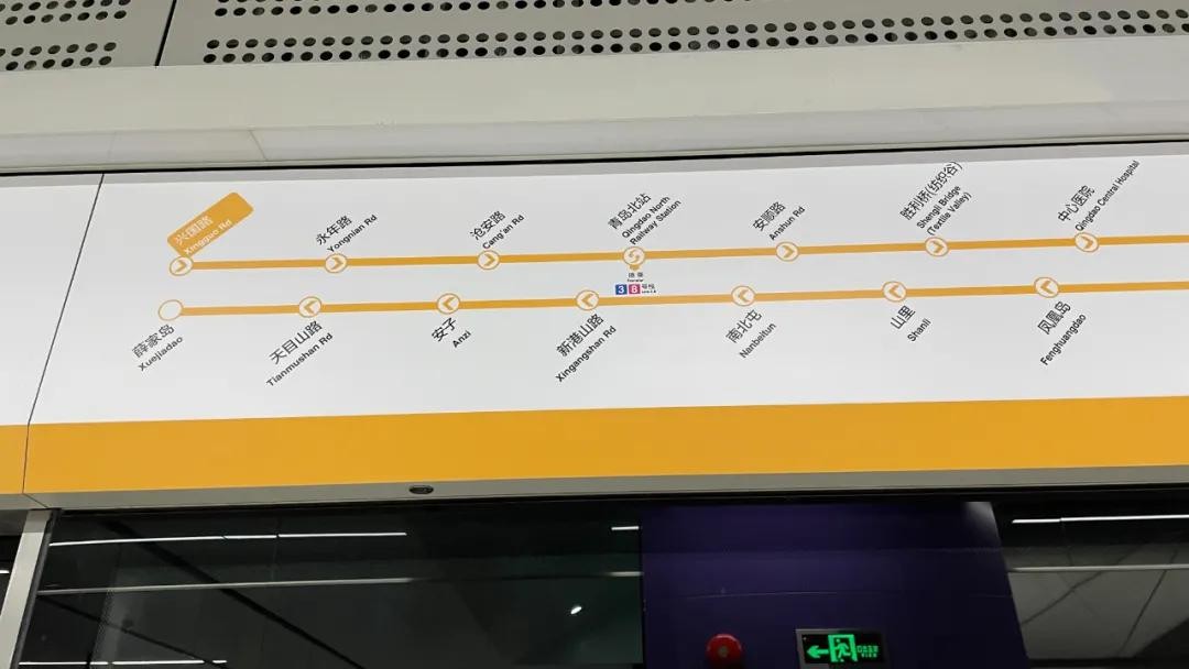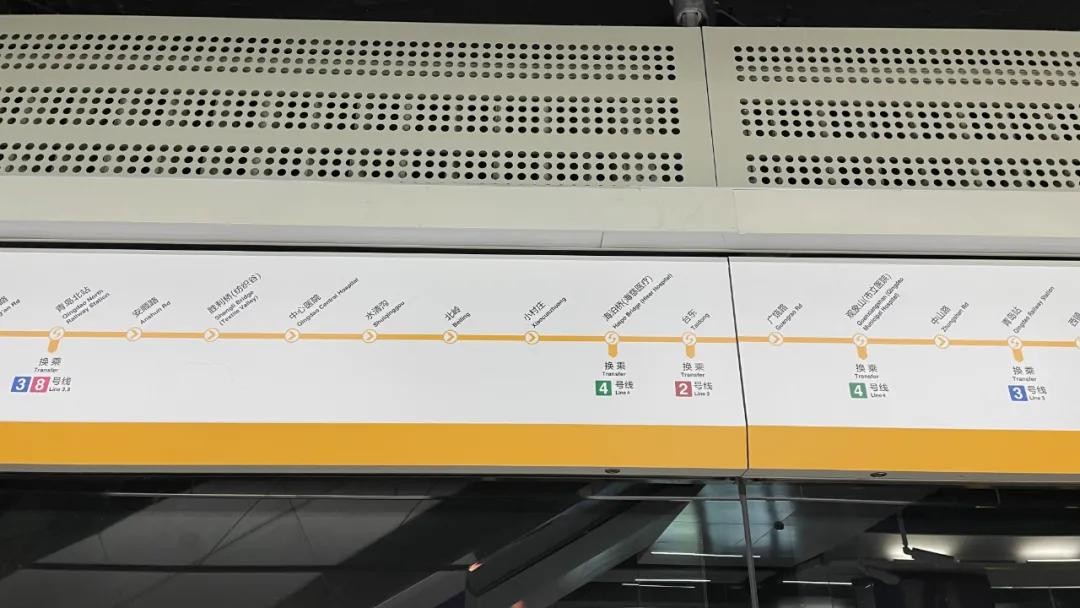 (考虑到 4 号线在一年内即将开通,本着节省成本考虑进行重新制作,在观象山、海泊桥添加上换乘 4 号线)
