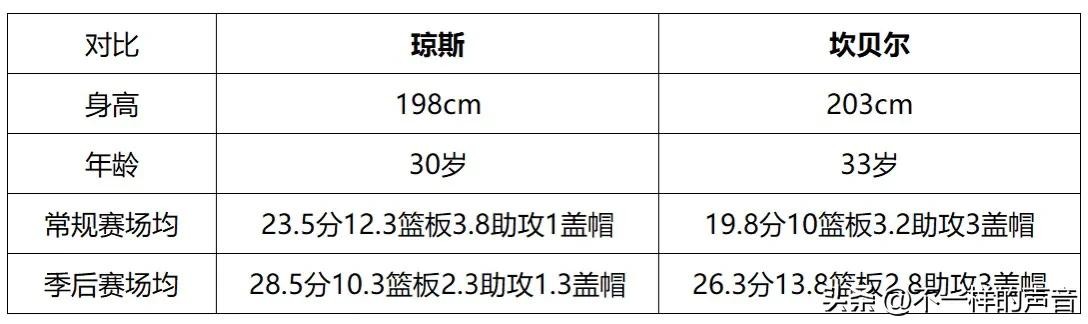 坎贝奇在季后赛中更加适应了联赛的强度,场均3次盖帽也是一个防守大闸,季后赛的得分也比常规赛多了7.5分。