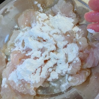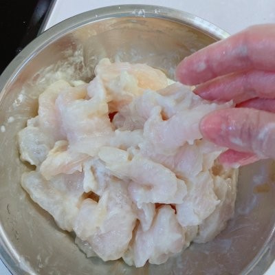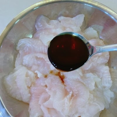 2、鱼片里加入1汤匙鱼露