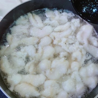 6、把鱼片依次下入到开水里(保持大火状态)
