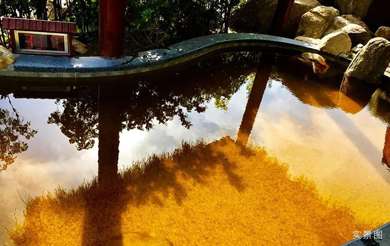 氮洗温泉特有的纯天然温泉水中富含偏硅酸、氟、碘、溴、锂、锶等30多种