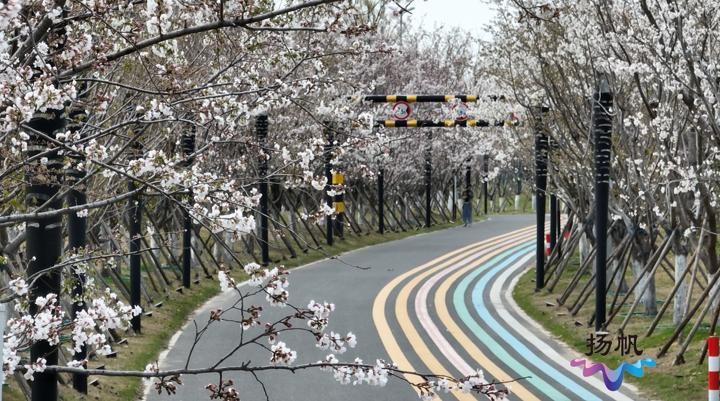 今天(3月21日)是二十四节气中的春分。短暂的阴雨天气遮不住满城春色,其中,位于生态科技新城扬州航空馆附近的“三河六岸”公园,凭借一条多彩的樱花大道,成为市民游客追捧的网红打卡地。