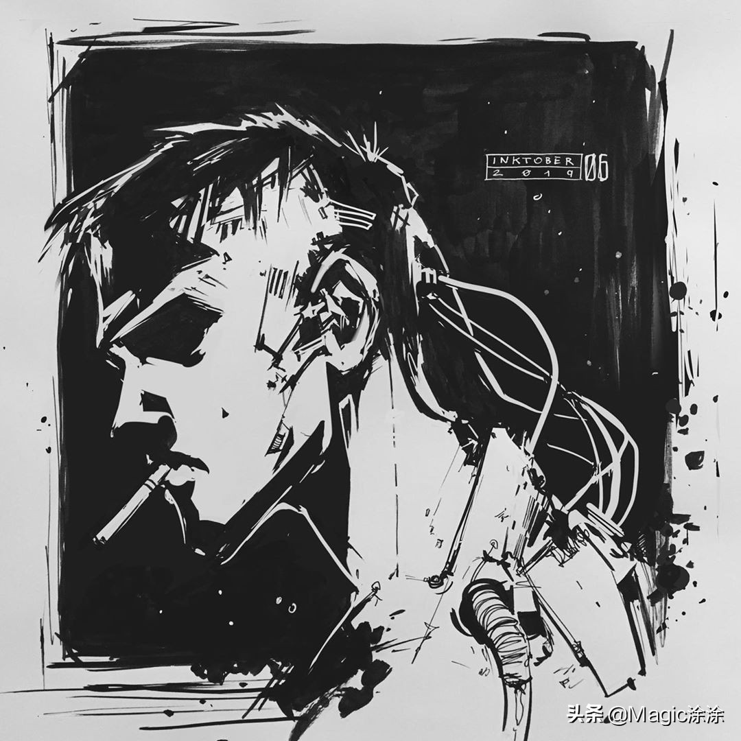 在画人物的时候,也可以用硬朗的线条表现出硬汉的感觉,这种强烈的黑白对比视觉冲击力很强。