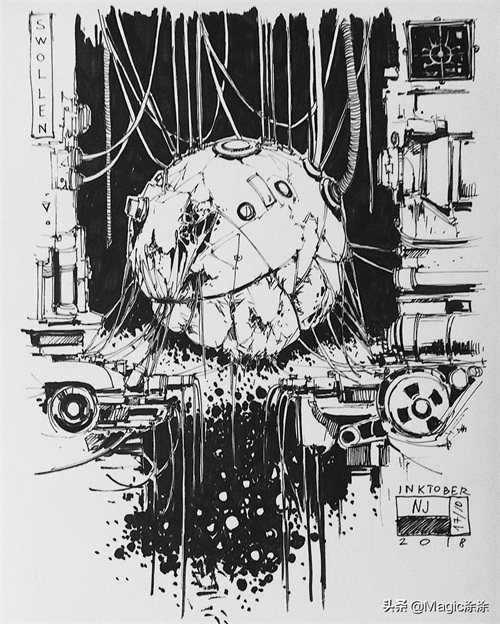 今天涂涂就为你们分享一组由作者ninjajo_art绘制的黑白风格插画,一起来学习一下作者是如何用线条来表现不同的场景。