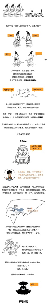 还有能征善战的亚历山大,凯撒,拿破仑,也会涉及到罗马分裂为东罗马帝国和西罗马帝国,英法战争,基督教在黑暗时代的崛起等等。