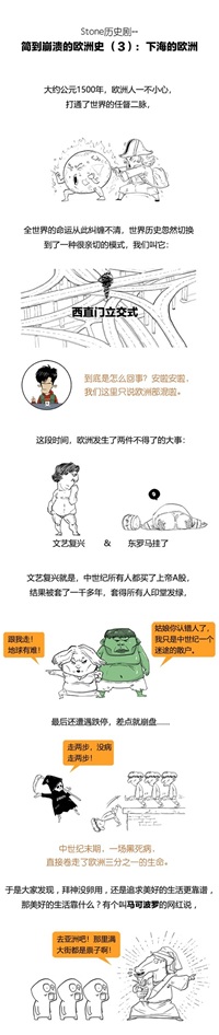 这里涉及到海洋文明的起源,古希腊罗马历史,再到黑暗的中世纪,文艺复兴,最后谈到欧洲的大航海时代。