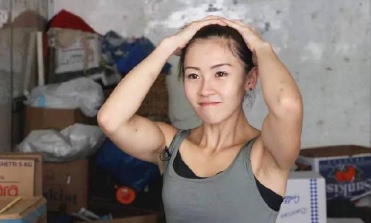 照片中的女生脸蛋精致漂亮,但是却有着一身的肌肉。
