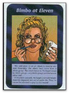 卡片下方写着:"对任何男性名人攻击+5,攻击必需由媒体发动。若成功,该男士将因丑闻无法再担任公职而退出游戏"。
