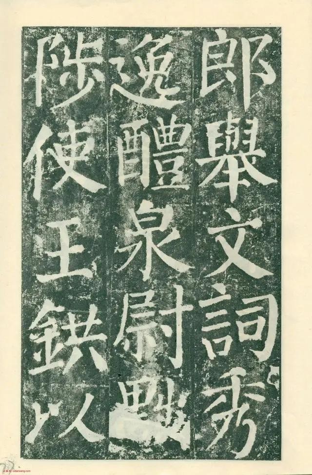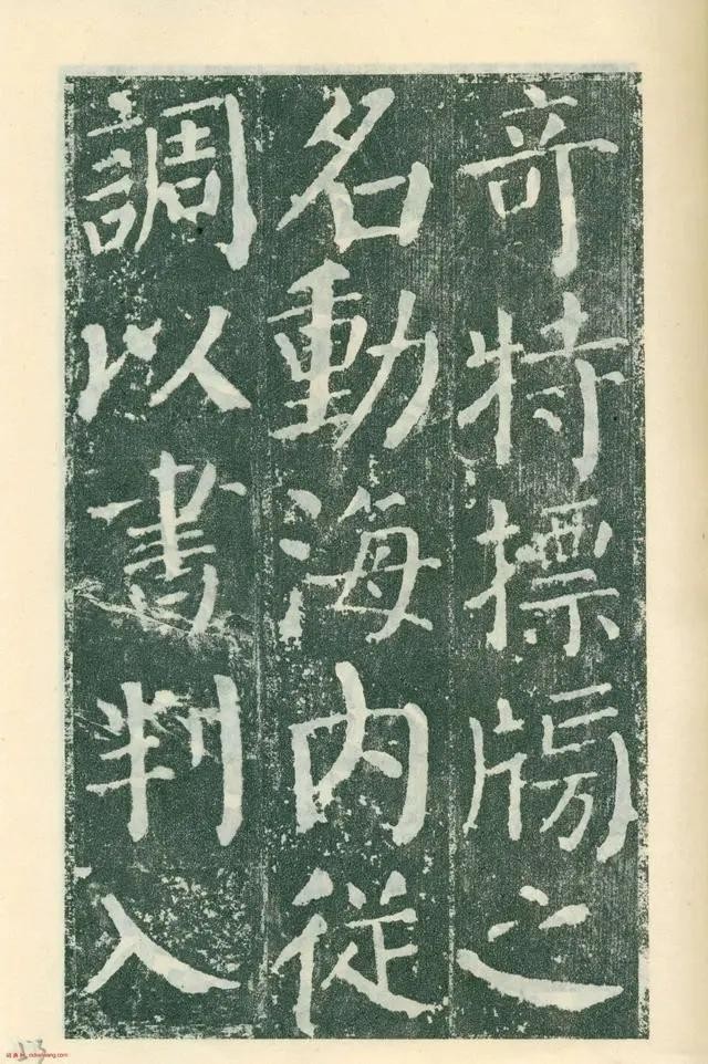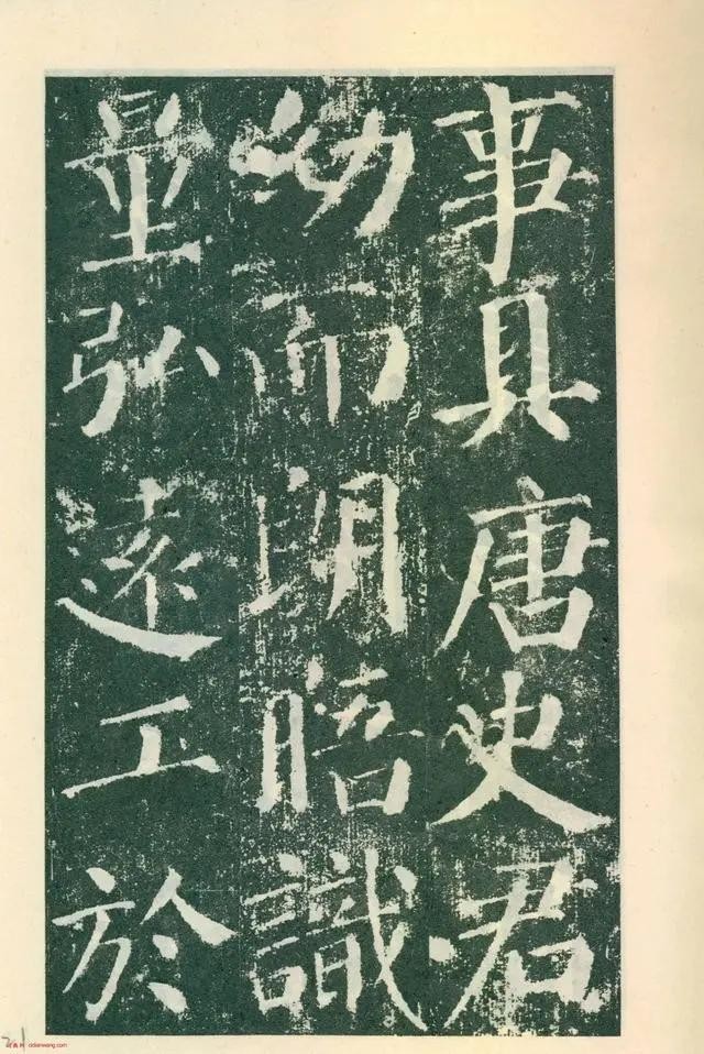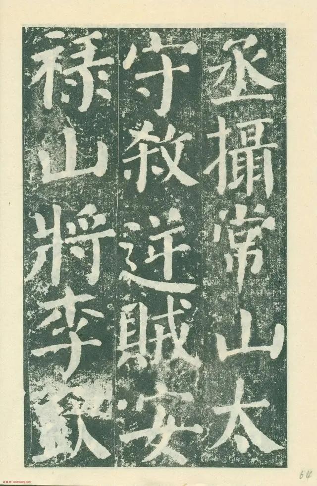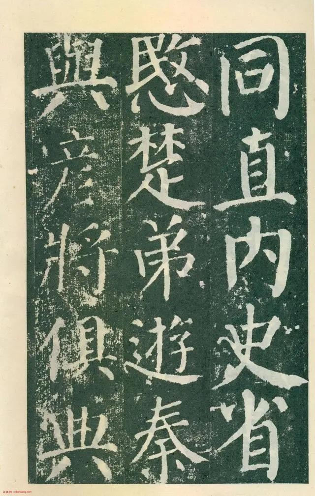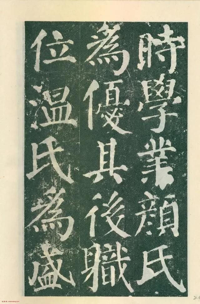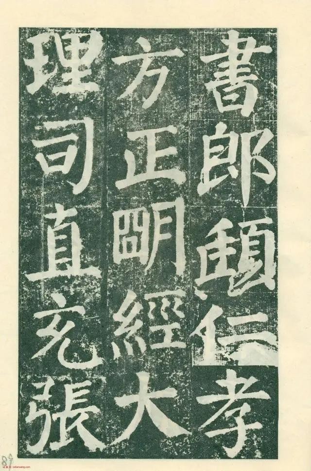 《颜勤礼碑》四面刻字,现存三面。用笔横细竖粗,藏头护尾,方圆并用;结体端庄大方,宽绰舒展。
