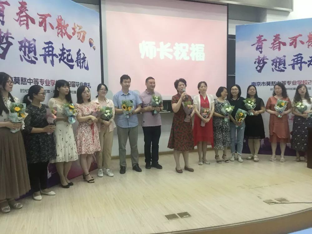 莫愁中等专业学校校长朱国美、党委书记姜丽、副校长刘燕、副校长章学军、副校长陈军、党委副书记沈鸣、副校长王燕等校领导出席典礼。各系部负责人和全体老师、合作高校代表、家长代表等共同见证毕业典礼。