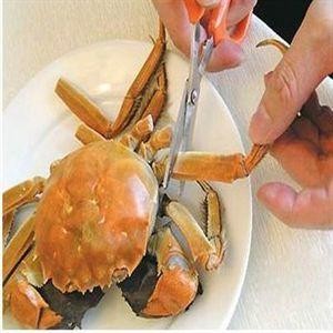 4、吃完蟹盖轮到蟹身,先用剪刀将多余的蟹脚、蟹嘴和蟹肺剪掉;