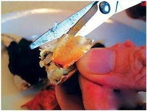 1、剪掉大闸蟹的八只脚,包括两只大钳,放凉后其中的肉会自动与蟹壳分开,很容易被捅出甚至是被吸出