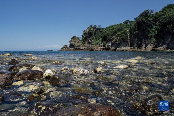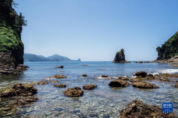 这是6月12日在日本静冈县贺茂郡西伊豆町堂之岛公园拍摄的海景。伊豆八景之一的堂之岛位于伊豆半岛西海岸的海湾内,有许多小岛星罗棋布地散落其间。