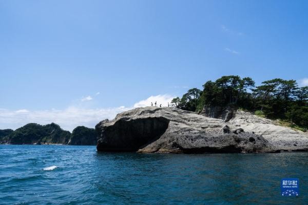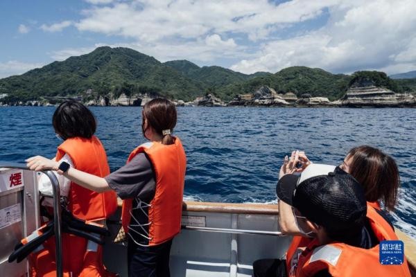 6月12日,游客乘船游览日本静冈县贺茂郡西伊豆町堂之岛公园。伊豆八景之一的堂之岛位于伊豆半岛西海岸的海湾内,有许多小岛星罗棋布地散落其间。