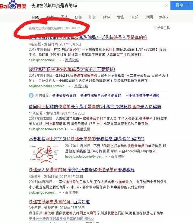 近日,有网友在“南宁辟谣”微博后台爆料称,一到暑假,在QQ群、微信群里经常看到有招募快递在线填单员的信息。