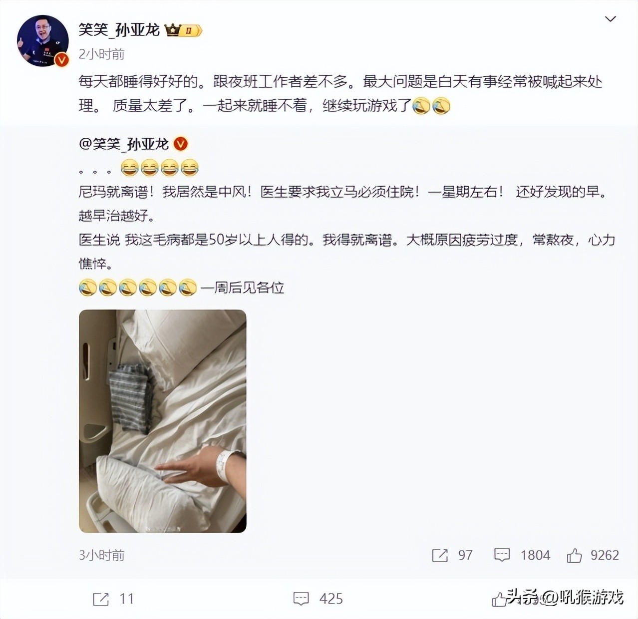 笑笑孙亚龙,作为电竞界的知名人物,无论是在DNF、LOL选手还是解说和主播的领域都取得了显著的成就。然而,最近他因为健康问题——中风而住院,这一消息让粉丝们非常担忧。