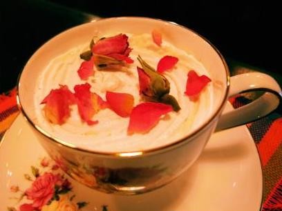 此款咖啡味道香醇、浓烈,极适合于餐后和平时饮用。之所以叫做花式咖啡,是因为它的制作手法和制作后的成品很特殊。从图中就可以感受到其中的魅力。在美妙的咖啡中,漂浮着点点的玫瑰,色彩美丽,样式新颖。又附带着对情人的爱意,种种的形式都透露出浪漫的气息与法国这个美丽国家的神秘。