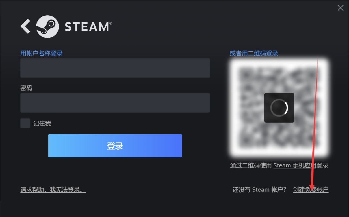 2、加速之后,玩家们可以在电脑上启动steam的客户端,在登录界面的右下角的位置,就可以找到创建steam账号的选项。