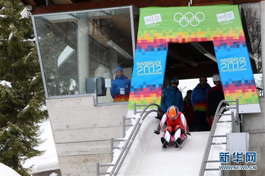 ↑图为2012年1月13日,参加首届青年冬季奥林匹克运动会单人无舵雪橇项目的奥地利选手普勒克在训练中。 新华社记者李明摄