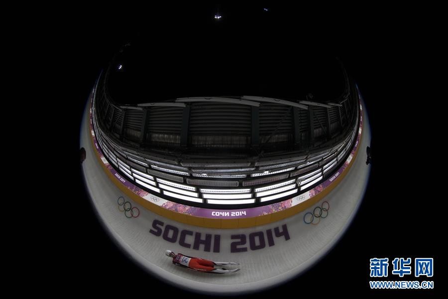 ↑图为2014年2月9日,澳大利亚选手费拉佐在2014年索契冬奥会无舵雪橇男子单人项目比赛中。 新华社记者李钢摄