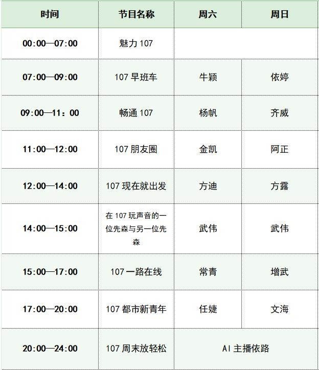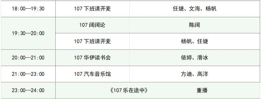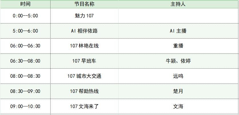 FM107太原交通广播节目单