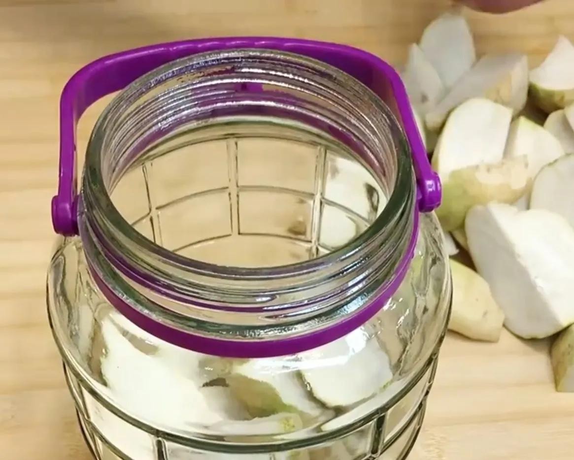 第四步:调料水晾凉后,倒入装有芥菜疙瘩的罐里面,调料水刚好腌住芥菜疙瘩就行,再加少量的高度白酒,然后盖上盖密封保存大概40天后就可以吃到芥菜疙瘩咸菜了,不过按照这样制作放一年都没问题!