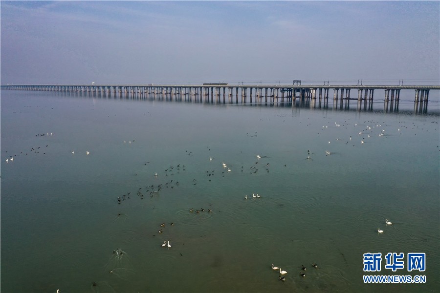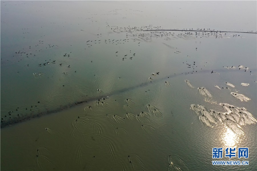 12月25日,航拍石臼湖。新华网发(刘玉才 摄)