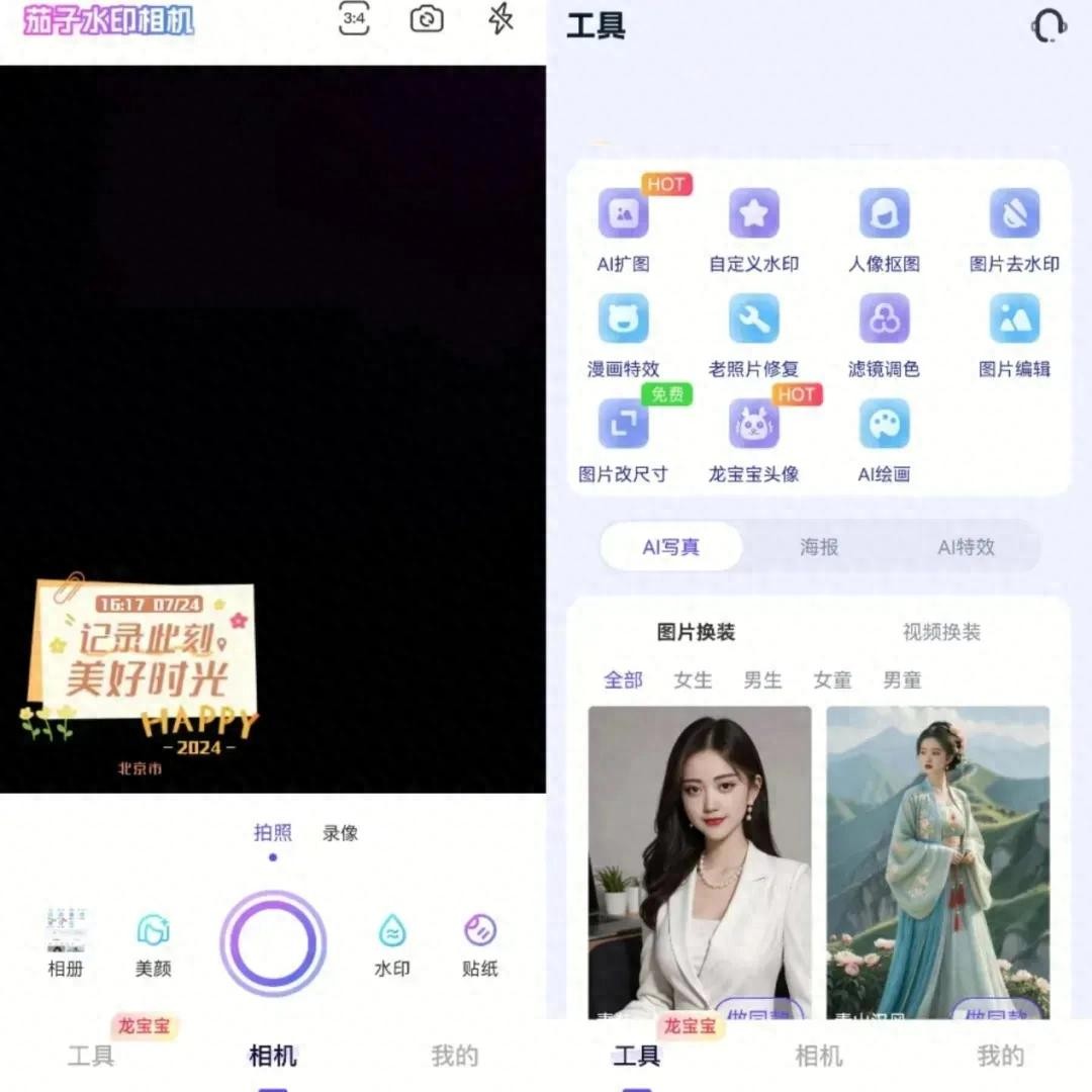 它是一款功能强大的图片编辑软件,主要提供水印相机等实用工具。除此之外,也具备人像抠图、AI扩图、漫画特效等其他工具。