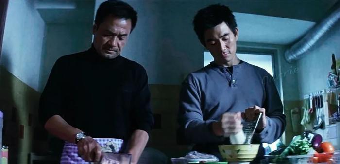 一部是《大事件》,尤勇智饰演冷面杀手张春,和任贤齐饰演的劫匪在居民楼偶遇。两个人没有针锋相对,反倒是脱下衣服开始做饭,明明已经被外面的警察团团包围,却仿佛在自己家里一样轻松自如。