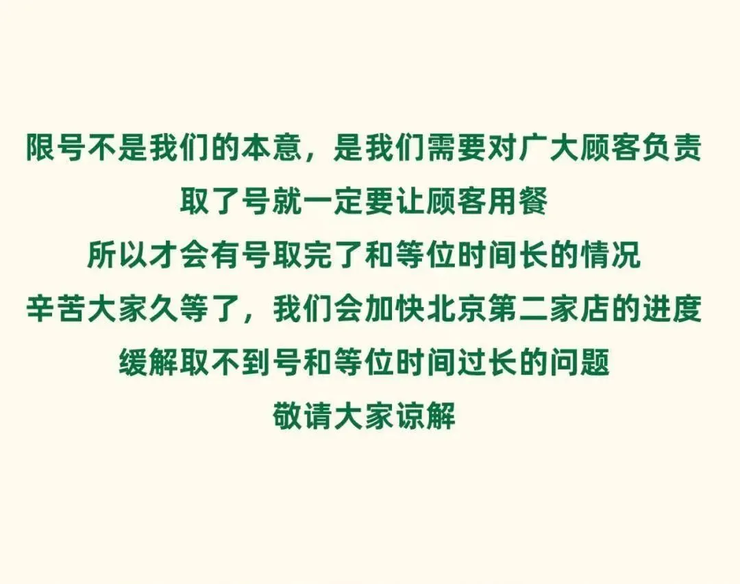 通俗简化后,即为:不存在饥饿营销,只是没想到这么火爆,位置不够、原料不足,我们抓紧开第二家店。