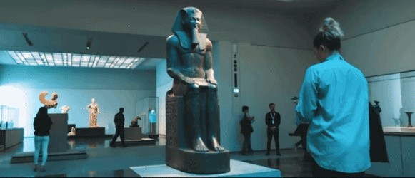 你看到第一展厅被称为大前庭(The Great Vestibule),它将展示来自世界各地的三个类似的物体,每一个都能让你感受到即使是相隔甚远没有任何联系的早期文明,他们之间也存在许多相似之处。例如,你会发现三个黄金死亡面具,三件遗物等。这个展厅的作用就是让游客从一开始就产生兴趣,从真正全球的角度来思考历史和艺术。