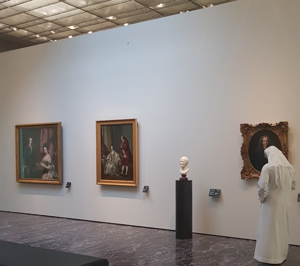 阿布扎比卢浮宫一共有6,400平方米的永久画廊 - 目前,有235件是阿布扎比卢浮宫自己的藏品,另有300件藏品是暂时从法国卢浮宫借出来的。