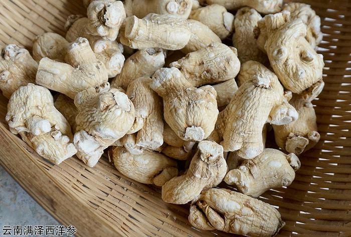 云南满泽西洋参选料是西洋参中比较好的大颗粒,西洋参粒头为四宝粉原料,因为这样打磨出来的四宝粉才更好些。是西洋参修剪根须、枝叶什么的,留下其中比较好的部位,西洋参粒头,水洗比较干后打磨西洋参粉食用。