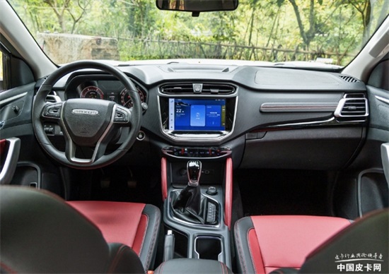 车辆内饰同样以黑色调为主,纯黑色的皮质座椅加入了红色的缝线,营造出良好的运动感。对称式中控台简约大气,搭配7寸液晶仪表、10.4寸高清触控大屏、真皮多功能方向盘以及“一”字型贯穿式出风口,在黑色主色调的烘托下显得稳重。江淮T8 PRO黑矅版配备电子手刹、倒车影像、无钥匙进入、一键启动、定速巡航、胎压监测、后排出风口等配置,可以满足用户日常的舒适性和科技化需求。