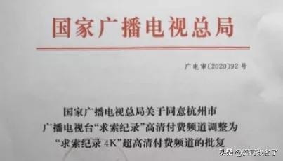 2020年3月20日,国家广播电视总局批复同意杭州市广播电视台“求索纪录”高清付费频道调整为“求索纪录4K”超高清付费频道。