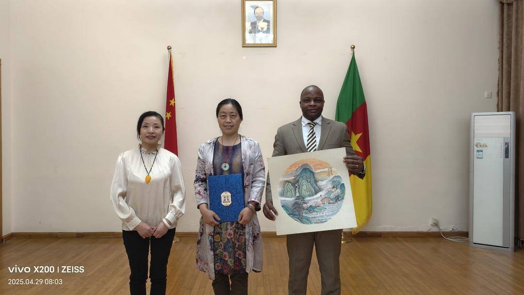 4月29日,一场意义非凡的文化交流活动在喀麦隆驻华大使馆展开。在中名联赵苹主任的带领下,来自江苏南京的中名联签约画家吴红丽走进喀麦隆大使馆,以艺术为桥梁,代表家乡向驻华外交官们传播中国传统文化,让中华艺术的魅力在异国他乡绽放光彩。
