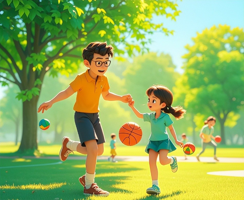 两人三足:用绳子将家长和孩子相邻的两条腿绑在一起,形成 “两人三足”,共同从起点走到终点。游戏过程中,需要家长和孩子相互配合、协调步伐,能够培养孩子的团队合作意识和平衡能力。运球大作战:准备一个小皮球,家长和孩子面对面站好,将球夹在两人中间,合作将球运到指定地点,中途球不能掉落。这个游戏可以锻炼孩子的合作能力和身体的控制能力,同时增强亲子之间的默契。